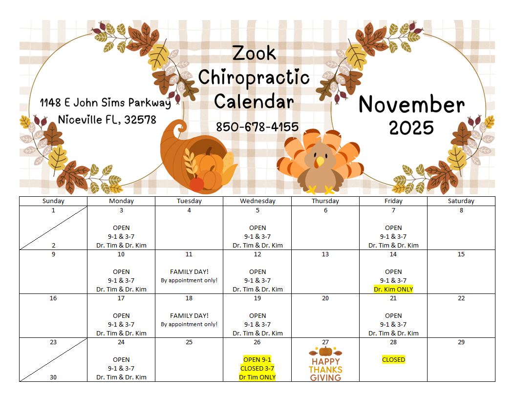 Zook Chiropractic is a family friendly, principled chiropractic office. We have been in Niceville since 1991 and have established an excellent, trusted reputation for quality and integrity.